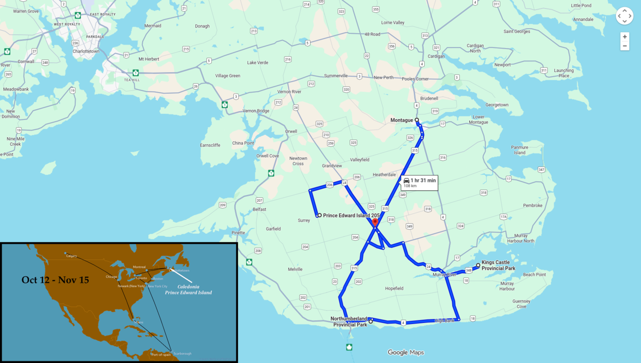 I paid the toll, and drove along the bridge, which was an impressive sight. I was glad to get to drive over it, even if it did add a huge distance to my trip. It was about 13km long, one lane each way, zoned 80km/h, and so it took a while to drive over it, across the ocean, an interesting experience. I got off the bridge into New Brunswick, an extra province to my list that I hadn’t expected. There were signs advising to slow down at night because of moose. It had started raining, and didn’t stop for the entire day, which made for muted, misty scenery. There were signs of good autumn colour. I saw a sign for a turn off to the Bay of Fundy, which I had heard about, with very high and fast tides. It would have been interesting to see if I had more time, but I think it was a fair way away.